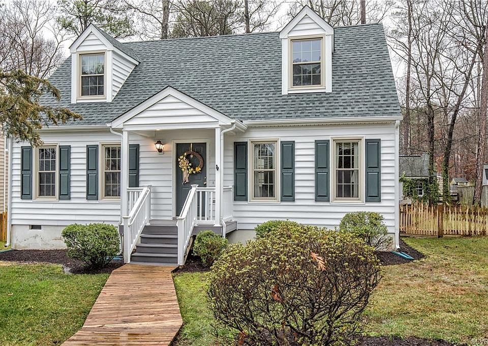 Charming cape in cul de sac offers privacy and convenience to schools, shopping , restaurants and interstate. Home is freshly painted, new carpet, 2015 vinyl siding and new windows, new roof, 4 bedrooms and 2 full baths... eat in area in large kitchen with bay window. Large back yard with storage shed ( conveys as is, where is ). Seller is offering HSA Home warranty. Adorable house with areas for gardening and patio for entertaining in back yard. Please contact Henrico county school board for verification of public schools. Fencing in back yard belongs to neighbors on either side and back of property. Survey attached