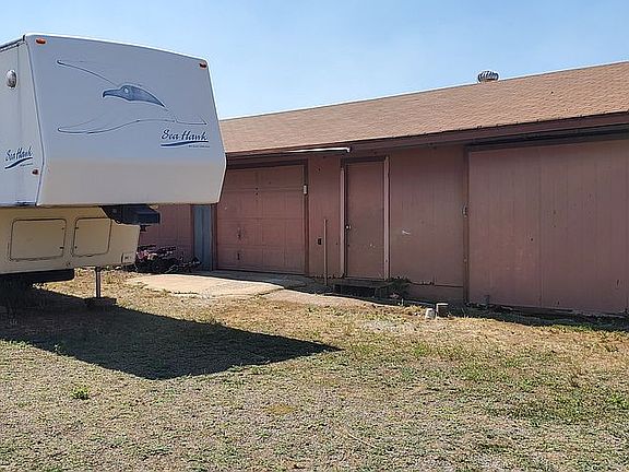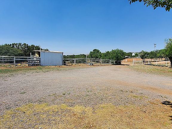 4 bedroom, 3 full bathroom. Just under 2 acre lot. Shed, 2 car garage, tack room and 2 corrals on the property. Fenced in back yard. There are two good sized living spaces. One living space has a brick wall with shelves and a working fire place. Master room has walk in closet. 4th bedroom is large in size and has it's own bathroom with a shower in it and its own water heater. House is on Natural Gas and City water and has a septic system.