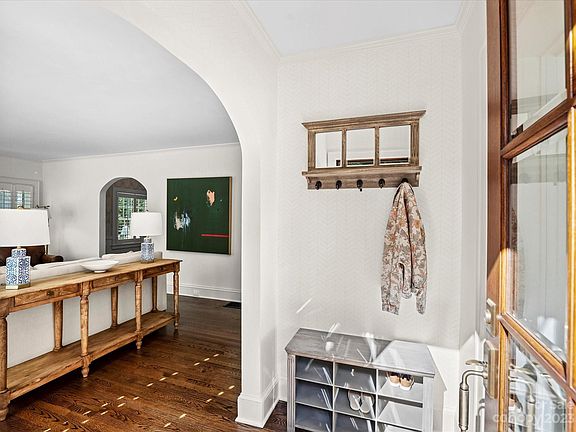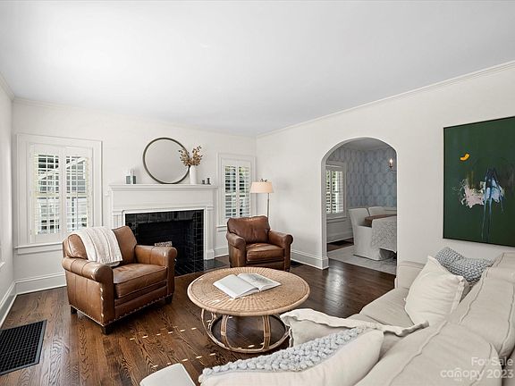 Welcome to this picturesque home in the heart of Myers Park. This home underwent a large renovation and addition in 2020, to include the perks of modern living while maintaining original charm. The front living room boasts natural light, shutters, HW floors and historic arched doorways. A sophisticated white kitchen includes marble countertops, tile backsplash, SS appliances and a beverage fridge. The den provides a coveted second living space with vaulted ceilings, a wood burning FP, built-ins and access to the back porch - perfect for enjoying a beautiful afternoon outside in the fenced yard. The primary suite boasts a spacious bedroom with vaulted ceilings, custom walk-in closet and bathroom with marble herringbone floors, dual vanities and oversized shower. This home is in no short supply of storage with a detached garage, walk-down basement, and walk-up attic. New A/C ’20 and furnace ’21. Blocks from Park Road Shopping Center, Greenway, shops and stores of Selwyn Ave.