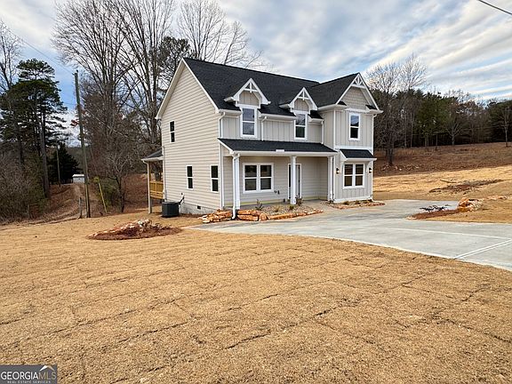 This beautiful 2025 new construction home located on a peaceful 1-acre partially wooded lot. This thoughtfully designed property features 4 bedrooms and 3.5 bathrooms, including one bedroom on the lower level for added flexibility. The open-concept main level includes LVP flooring, quartz countertops, a walk-in pantry, modern cabinetry, and stainless-steel appliances including stove, microwave, dishwasher, and refrigerator. The living room offers an electric fireplace, abundant natural light, an accent wall, and coffered ceilings. Upstairs you will find three spacious bedrooms, including the primary suite with a walk-in closet and a beautifully finished bathroom. Laundry is conveniently located on the main level. Exterior features include Hardie board siding, a composition roof, front porch, and a large covered back porch with a wood ceiling overlooking the natural landscape. The home sits on a slab foundation, offers 3 parking spaces, and has no HOA restrictions. Conveniently located near Gainesville, schools, parks, and major highways. A perfect blend of modern finishes and comfortable living in a serene setting