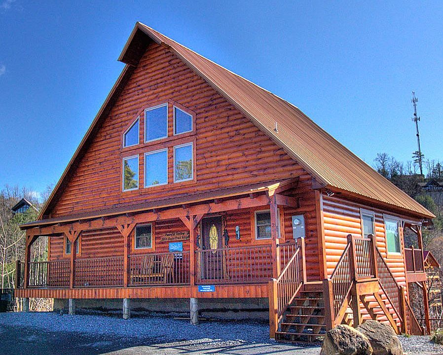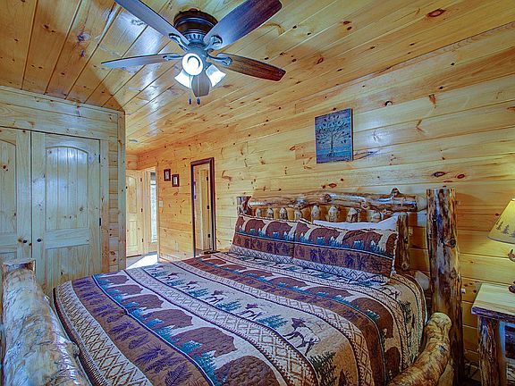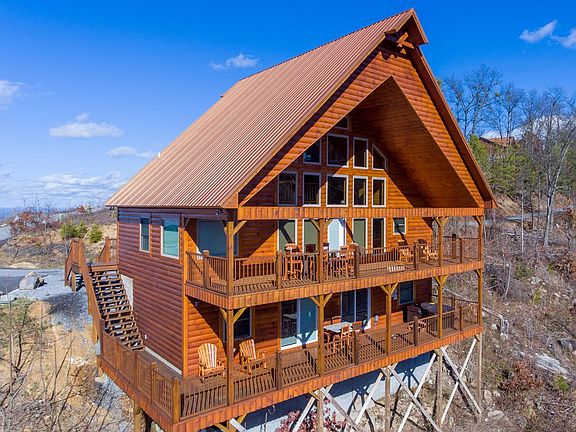 Gorgeous Log Cabin Nestled at the top of Eagle Crest Ridge. Outstanding views overlooking the Great Smokies, Pigeon Forge and Pigeon River Valley. Enter into the front door and be greeted by the Cathedral Ceiling and spectacular view provided by the wall of windows. Cabin is fully equipped with Amish Handcrafted furniture. Check out the Exquisite Cedar Dining Table with Tree Trunk Leg. Open concept Living room with fireplace is combined with spacious Dining area and Kitchen. 2 King Suites on main level with an additional down. Spiral Staircase leads to the game room and lower deck with Hot tub. Extra sleeping quarters in the loft. and bunks in the game room. Rental Income: 2019 (11.5 Mo) = $45844.00, 2020 = $72309.00 2021 (7 days) = $2620.00 Eagle Crest Resort is located minutes from local attractions. Time to: Dolly Parton's Stampede - 13 Min, Dollywood - 16 Min, Parrot Mountain - 16 Min, Gatlinburg - 27 Min, Great Smoky Mountain National Park - 29 Min. Douglas Lake - 30 Min.