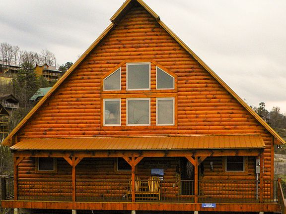 Professional Pictures coming. Gorgeous Log Cabin Nestled at the top of Eagle Crest Ridge. Outstanding views overlooking the Great Smokies, Pigeon Forge and Pigeon River Valley. Enter into the front door and be greeted by the Cathedral Ceiling and spectacular view provided by the wall of windows. Cabin is fully equipped with Amish Handcrafted furniture. Open concept Living room with fireplace is combined with spacious Dining area and Kitchen. 2 King Suites on main level with an additional down. Spiral Staircase leads to the game room and lower deck with Hot tub. Extra sleeping quarters in the loft.