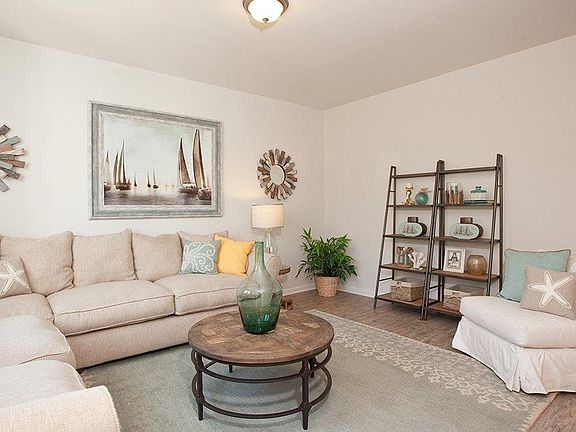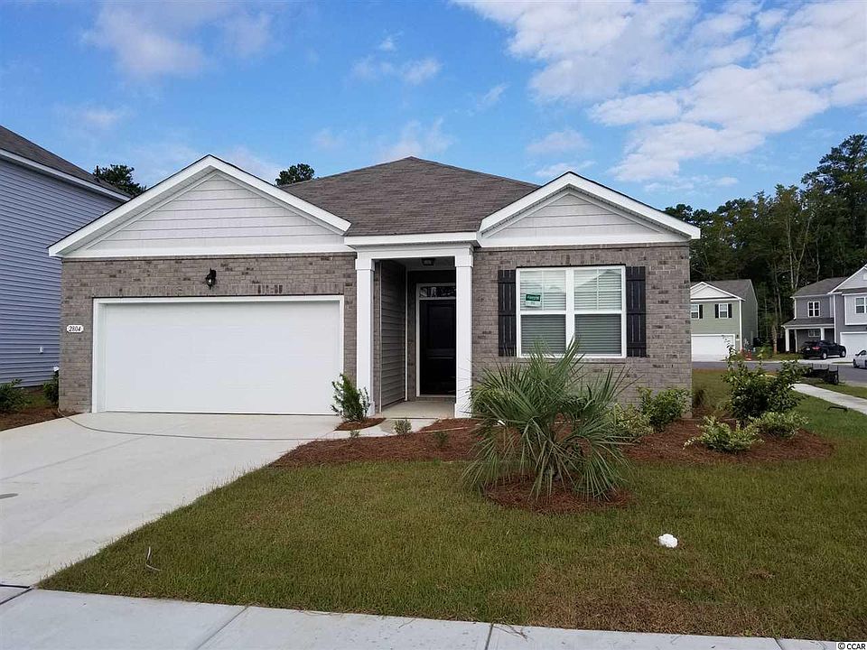 The Brick Front is beautiful and on a corner lot. With a great open design. Kitchen features stainless appliances (including refrigerator) and 36" cabinets with pendant lights over the gourmet granite counter height island, all overlooking the spacious Living Room and Dining Room - great for entertaining! Low maintenance Luxury Vinyl Wood Plank floors throughout the living area, bathrooms and laundry room. From the Dining Room, sliding glass doors take you to a 12 x 8 ft. covered porch. Owner’s suite offers a large walk-in closet and bath with 5 ft. shower, double vanity and sinks. garage door opener included! Meridian offers 200-300 new homes, featuring 10 floor plans both ranch and two story homes. We are the price-leader for single family homes in Market Common! Our home owners will enjoy a gracious pool, hot tub, air conditioned pickle ball court/meeting space, walking trails and a short golf cart ride to the beach. Live like you're on vacation! Photos of home are of a model home of same floor plan in another community and are for presentation only.