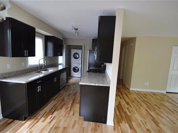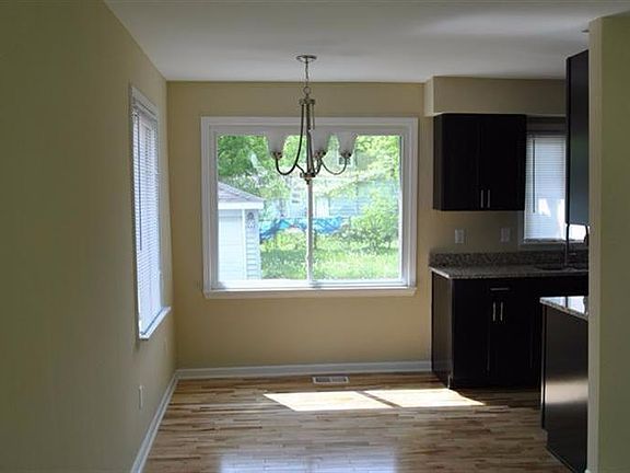Walk in to see the beautiful maple h/w flooring from the living room through the hallway, bedrooms and kitchen. The natural light shines through the house with the newer vinyl windows in every room! Continue on through the dining room to see the galley kitchen with stainless steel appliances, garbage disposal, granite counter, and updated cabinets with slam proof drawers and doors. Through the back door, you will find yourself relaxing on the back deck overlooking the partially fenced in yard with a 2 car detached garage. Bathroom recently updated as well with tiled floor, tiled shower walls and newer fixtures. Other updates in 2012 include 6 panel interior doors, light fixtures,furnace and c/a, water heater, washer/dryer and roof on house and garage. This home is available for sale or lease! Make your appointment today! All appliances included.