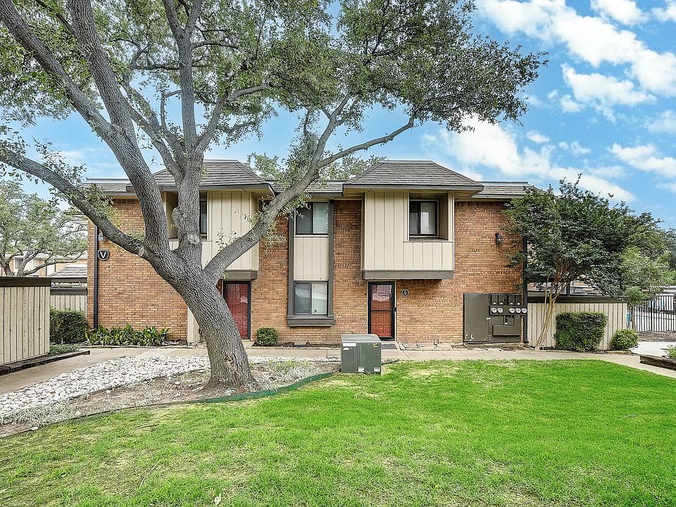 Rare floorplan with primary suite downstairs!! This beautifully updated unit features paint, plush carpet, and laminate flooring all within the last three years. Kitchen was completely gutted and remodeled and includes new stainless steel appliances. New windows on the first floor, new HVAC system interior and exterior units, new ductwork upstairs, new plenum box, updated electrical box, new French doors with built in blinds that lead to a low maintenance patio with turf, overlooking one of two community saltwater pools and two assigned covered carports spots. Easy access to LBJ and I 35. DFW and Love Field airports are within an easy thirty minute drive. Easy walking distance to places to eat and shop. Also Stark Elementary is within easy walking distance. Don't miss this move in ready gem in a prime location.