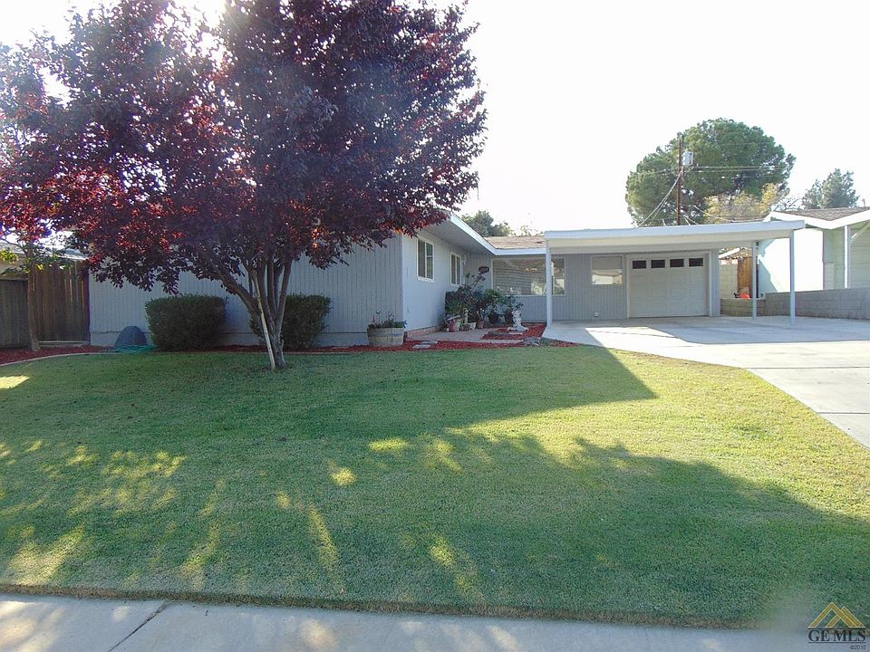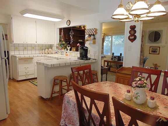 Mid-century charmer with vaulted ceilings! Large family home with living room and fireplace. Lovely open kitchen with formal dining with den and French doors. Large covered patio for entertaining and lots of extra concrete and nice sheds. Dual pane windows and home has AC plus a new cooler. Lots of storage in garage. Close to schools and shopping. New water heater.