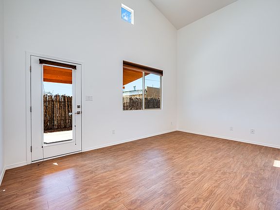 **OWNER FINANCING AVAILABLE** Discover comfort and contemporary living in this beautifully maintained single-story home offering 1,308 square feet of well-designed space. Featuring three bedrooms and two full bathrooms, this residence blends style and function with soaring ceilings and expansive windows that fill the home with natural light. The open-concept layout showcases a modern kitchen complete with stainless steel appliances and a generous island—perfect for cooking, gathering, and entertaining. The spacious primary suite includes a private bathroom and a walk-in closet, while two additional bedrooms and a full hallway bath provide flexibility for guests, a home office, or creative space. Eco-conscious upgrades include a solar photovoltaic system, an on-demand water heater, and an electric vehicle charger in the attached garage. Recent improvements such as fresh interior paint, a new sewer line pump, and a thoroughly inspected roof ensure peace of mind. Step outside into a large, private backyard enclosed by striking coyote fencing, offering a peaceful space for relaxation or family gatherings. Ideally located just minutes from shopping, the vibrant heart of downtown Santa Fe, and cultural hotspots like Meow Wolf, this home offers the best of both convenience and serenity. Whether you're commuting, traveling, or exploring the area, everything is close at hand. With its mix of thoughtful amenities, sustainable features, and prime location, this charming home is a rare find that offers both modern comforts and a sense of retreat.
