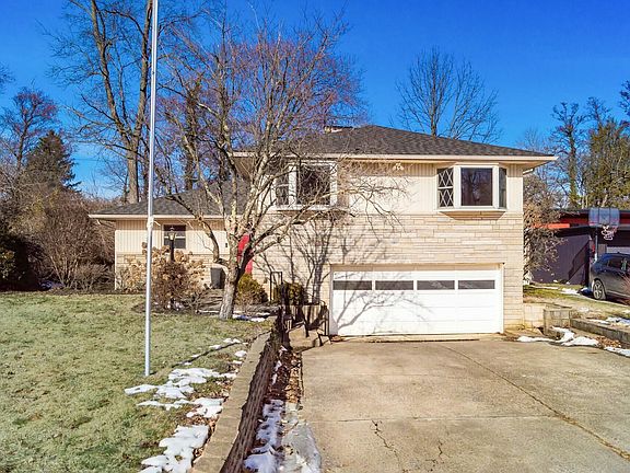Beautiful 3-level split home in the desirable Minerva Park with stylish updates throughout and fabulous pond views! NEW, on-trend kitchen features white cabinetry, SS appliances, granite counters, large island with quartz and counter seating! Inviting great room with fireplace and sliding doors lead you to the private, outdoor retreat-like backyard setting where you can enjoy the fire pit, nature and pond views from the deck. NEW carpet and LVP wide-plank flooring, NEW roof, gutters and gutter guards 2023! HVAC 2018. Upstairs you'll find two bedrooms with bay windows, updated full bath, and the owner's suite with full bath. Full finished lower level with NEW carpet, paint and a cozy fireplace! Prof. waterproofed in '21! Don't miss this amazing find in Westerville Schools!