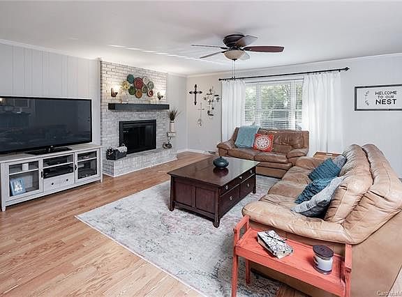 Welcome home! Looking for a move in ready one level home? This one is perfect for you! This charming brick home features an open floorplan. Once inside, the spacious light filled family room features a stunning updated brick fireplace and leads to the large eat in kitchen with a beautiful arched entryway that is perfect for entertaining! Kitchen features updated white cabinets, tile floors, electric cooktop, wall oven and microwave. Spacious Owners suite with walk in closet and bath and secondary bedroom and another full bath are located down the hall. Oversized detached storage or rec room is located in the large, flat back yard. Back yard also has storage shed and patio. This gem also features a large driveway- perfect for parking multiple cars. Great location- close to shops, dining and hwy 29 and 85.