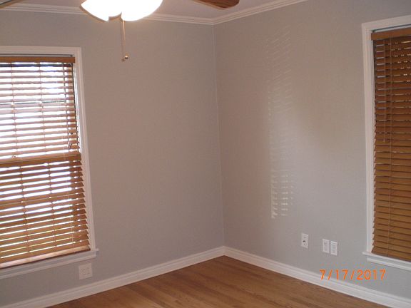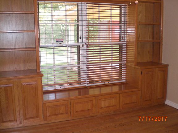 Empty and available with new interior paint. Covered stone patio with fan and light. Fully fenced back yard with storage shed. Granite counter tops in bathroom and kitchen with counter seating. Wood floors throughout. Working fireplace wood/gas. Gas stovetop, garbage disposal and kitchen pull out shelving. Massive amount of storage. Library with built in bookshelves. Refrigerator and microwave included. Laundry room and one car garage with electric garage door. Perfect house for a couple that is within walking distance of many stores and restaurants. Two small pets allowed with an additional deposit.
