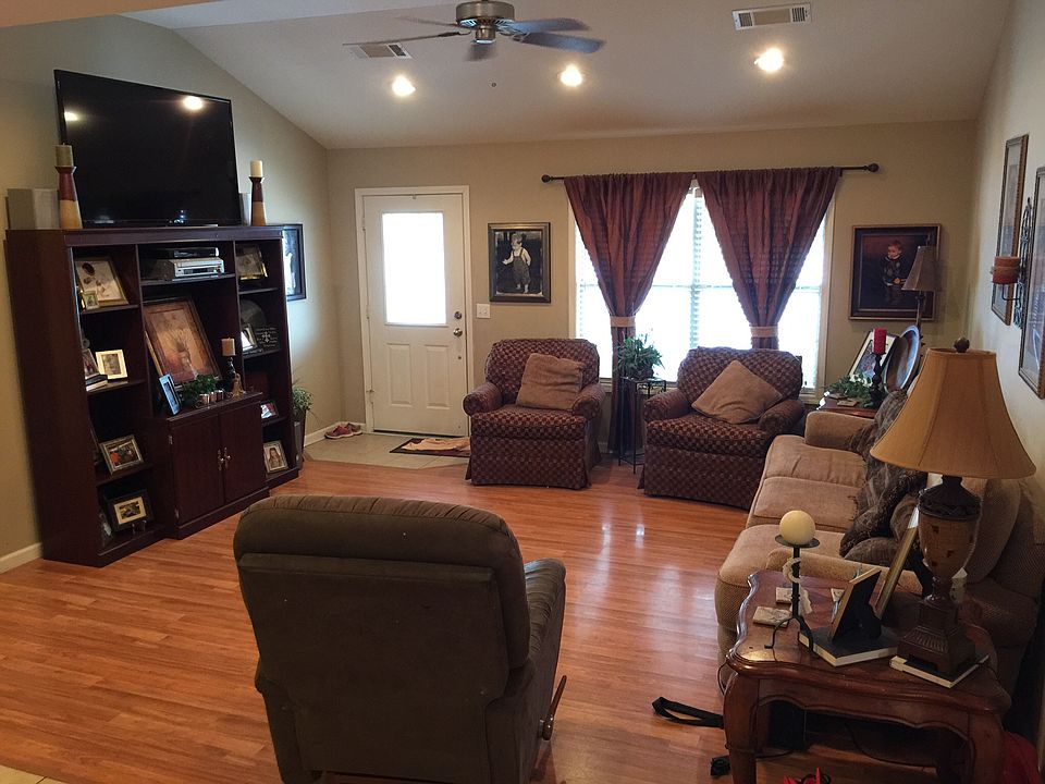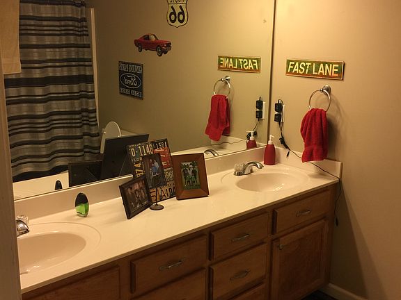 This home has a spacious play/toy room. All three bedrooms are located on the same end of the home. It has a security system, deck, pool, and patio.