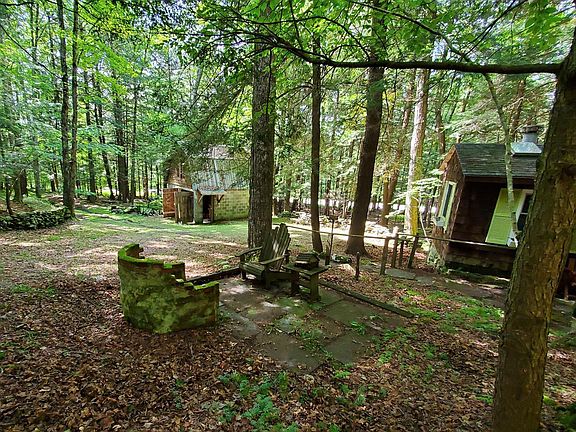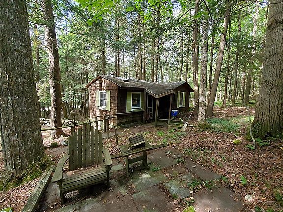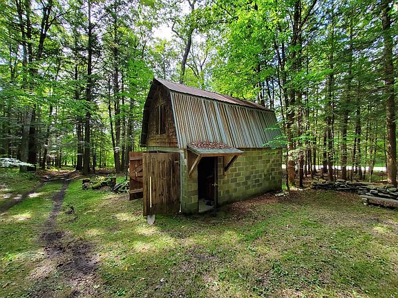 This secluded off-grid cabin, set on a nicely wooded 23 acre lot with several streams, checks all the boxes for a recreational retreat or simplified escape house. Set back from the town maintained road, the driveway winds past the 12x16 storage barn with loft, and on towards the cedar shake sided rustic cabin. The portion of the lot around the cabin is delightfully landscaped, with original stone walls, whimsical benches, an outdoor cooking and seating patio area, and a lawn that leads up into a tiered open meadow, where the solar panel is located. The cabin itself is off-grid, but utility power could be available, with service ending just about 500 feet down the road. Enter the cabin into the main living area - a combination living room/kitchen area complete with woodstove, wood fireplace, sink, and propane cooktop. There is a generous bedroom, a bathroom with a shower stall, and a utility closet. This property truly offers a simpler life. The water is fresh spring water from a concrete distribution box, the solar electric is a 12 volt supply from the panel array and stored in 4 deep cycle batteries, and heat is provided by the wood burning stove and fireplace. There is a propane hot water heater, and concrete 1000 gallon septic tank as well. The lot is gently sloping up from the roadside, with a few natural undulations in the terrain creating at least two defined seasonal streams. The woods are mixed hardwoods with rock features. The land would be great for various recreational pursuits. Whether you are looking for a quiet weekend getaway space, or have been thinking about a downscaled lifestyle, this property, located just 2:45 to the GWB, and 15/20 minutes to Walton/Sidney, is a great opportunity.