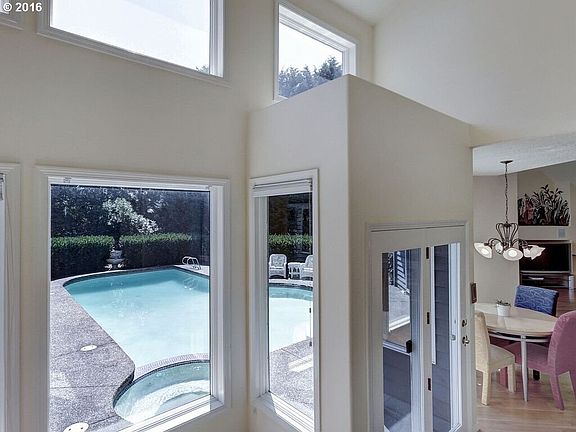 Feel like you''re always on vacation in this custom built Shelburne Home. Lives like a ranch with 3500sqft & master suite on main floor. Large windows centered around pool & spa, featuring picturesque views of the surrounding landscape bringing the outside in. Lofty ceilings, hardwood floors, large open kitchen, multiple gathering & entertainment rooms. Generous pool privately encased by ample gardening space.Trillium /Athey/West Linn HS