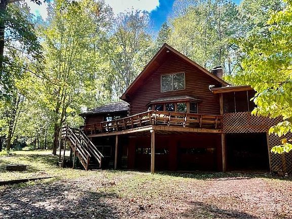 Wonderful Log Cabin Nestled on 6+ Beautiful Treed Acres's that include Water Frontage on a Spring Fed Private Lake. 3 Fireplaces, Great Rm w/Cathedral Ceilings, 2nd Floor Loft, Split Bedrm Plan including Spacious Master Bedrm, downstairs Basement Bedrm w/Full Bath & Separate Exit, Potentially makes this a 2nd Living Area or Mother In Law Suite. Basement Workshop. 2 Relaxing Front & Rear Decks as well as 2 relaxing Docks to Fish for Trophy Bass while enjoying the Views. Low Country Taxes ! No HOA ! Horses & certain Farm Animals Welcome. New 50 yr Arch Roof that according to former owner was installed 2007. Leaf Proof Guttering System. Septic pumped July 2024, all looked well according to the service company. Home Security System. Only 40 min to Charlotte Douglas International Airport. Comporium High Speed Internet up to 2 Gbps. Paved County Roads ! All information deemed correct but not guaranteed, please verify anything important, including School assignments before submitting an offer