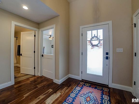 - INTERIOR AMENITIES: Garage Door Opener(s), Ceiling Fan, Ceilings/Cath/Vault/Tray, Radon Mitigation System, Solid Surface Counter Top, Window Coverings