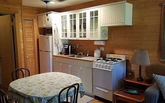 Vacation all year round! You'll love this cozy 1 bedroom cabin with knotty pine interior. The wood burning stove will warm the air on cold winter nights. The covered front porch offers an awesome river view. Nice open floor plan with new bathroom. Garden shed for lawn tool storage and carport attached to house. All this and more on an acre lot. Easy to show!