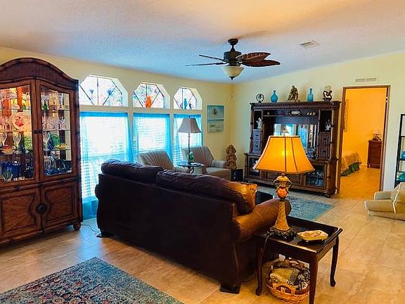 This home is in a senior park with leased land with a monthly lot rent of $522.13. This fully furnished 3 bedroom 2 bath exquisite turnkey home is the answer to all your problems. This triple wide offers 1,778 of square feet under air and a total of 2,773 square feet under roof. The Carrier 5 ton A/C unit was installed in 2018. This home is decorated with impeccable taste and all rooms offer high end furnishings. The 16x13 kitchen is a cooks dream with a long peninsula and cabinets galore. Plenty of room for dining in your 12x11 formal dining room with large table and 6 chairs. Ceramic tile in the kitchen, dining, living room and hallway. Huge 23x14 living room for entertaining and relaxing. 14x12.6 master bedroom with walk in closet and queen size bed. 12.6x10 guest bedroom with walk in closet, queen size bed and bamboo wood flooring. 13x9 3rd bedroom or den, walk in closet and Pergo wood flooring. Recline in your 24x13 family room to watch your favorite sports on your 65" T.V. Wanting some fresh air? Relax in your 18x15 screened lanai. Missing your husband? Go look in your 15x15 shed that might be where you'll find him. Plenty of room for parking in your 25x20 carport. Bonus.......... this homes comes with a golf cart with a full price offer. This home is in a very desirable senior park with a golf course and lake, offering many amenities. This showpiece will not last long so call now. All listing information is deemed reliable but not guaranteed and should be independently verified through personal inspection by appropriate professionals. American Mobile Home Sales of Tampa Bay Inc. cannot guarantee or warrant the accuracy of this information or condition of this property. Measurements are approximate. The buyer assumes full responsibility for obtaining all current rates of lot rent, fees, or pass-on costs associated with the community, park, or home from the community/park manager. American Mobile Home Sales of Tampa Bay, Inc is not responsible for quoting of said fees.
