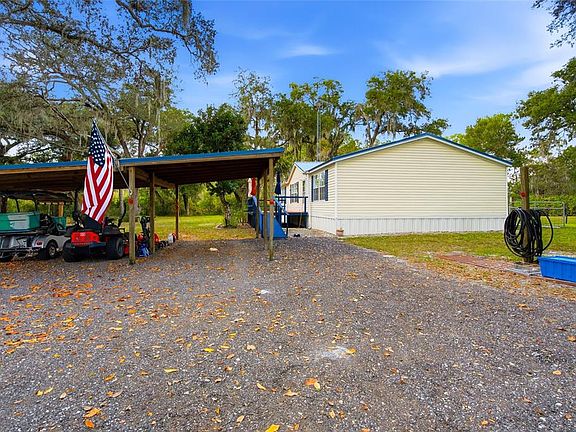 Great Property - Tucked away just minutes from town, this privately situated 7± acre property is full of surprises. The home features a metal roof, generous living spaces, and an oversized kitchen with abundant cabinetry, a breakfast bar, and an easy connection to the dining room. The spacious primary bedroom offers a large walk-in closet and a roomy bath with newer flooring, a 2023 commode, double vanity, garden tub, and walk-in shower. Outdoors, the land blooms with personality: Meyer lemon, pink grapefruit, orange, peach, mulberry, fig, avocado, and grapefruit trees, plus blueberries and grapevines. A fenced garden area awaits your green thumb, complete with a 12x24 covered sitting area where you can relax and enjoy the literal fruits of your labor. Additional property features include a 12x24 storage building with electricity, an RV carport, and a massive 40x60 metal building at the front of the property that contains two shipping containers—ideal for extensive storage. A separate pole barn sits alongside it for even more space. Other perks: an on-demand tankless water heater, included washer and dryer, multiple exterior water spigots, and a serene setting at the end of a dead-end road. Close the gate, inhale the quiet, and let the world fade away.
