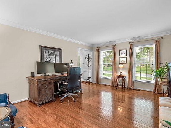 A classic brick facade with stately shingles welcomes you home to St. Johns Green and this 3,710+ sq ft upgraded colonial touting a 6 zone irrigation system, a 2 year old architectural shingle roof, a Trex deck, and a Smart Home upgrade using internet-connected devices to enable the remote monitoring and management of various systems. Warm and inviting hardwood foyer opens to this home where you can entertain in style offering a formal living room showing off profile crown moldings, a formal dining room accentuated with crown molding, chair rail trim, wainscoting, and bi-fold doors opening to a fully appointed kitchen. Create your finest dishes in the chef's kitchen where your culinary imagination goes wild highlighted by 42" Shaker cabinetry, granite counters, subway tile backsplash, a center island with a breakfast bar, a stainless steel appliance suite, and an open breakfast room brightened by a bold bay window. Designed to unwind in, the family room hosts a floor to ceiling brick surround gas fireplace, profile crown molding, louvre shutters, a breezy ceiling fan for added comfort, and a glass slider walkout to a 13x18 screened porch with low maintenance decking, electric and a ceiling fan. All bedrooms are on the upper level including an owner's suite presenting a tall vaulted ceiling, a sitting room converted to amazing walk-in closet with a custom closet system, and a remodeled garden bath displaying a frameless glass shower, oversized tile surrounds, gorgeous Kostic tile floors, and a custom Shoemaker reclaimed wood double vanity. Embodying style and comfort, the lower level offers an exercise room with French doors creating a possible home office, a rec room with a walkout to the a partially covered paver patio with a fire pit, and beautifully landscaped backyard, and a games area with a custom wet bar. Ideally located minutes to shopping, dining, parks, entertainment, major commuting routes, BWI airport, and both the Baltimore and Washington metro areas.
