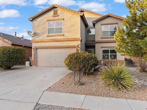 Beautiful 4-bed, 3-bath home with a 2-car garage, perfectly situated in the heart of Rio Rancho. Three distinct living spaces--a formal living room, a warm and inviting family room with a gas fireplace, and a versatile loft. The main level has elegant wood laminate flooring, and the great room flows seamlessly into the kitchen. The kitchen features a tile floor, pantry, gas stove, breakfast nook, and convenient patio access--perfect for indoor-outdoor living. Upstairs, the expansive loft offers possibilities, whether for a playroom or home office. The luxurious primary suite is a true retreat, featuring a dual-sink vanity, a relaxing garden tub, a separate shower. Located near top-rated schools, parks, shopping centers, Intel, Cottonwood Mall, and Presbyterian Rust Medical Ctr.