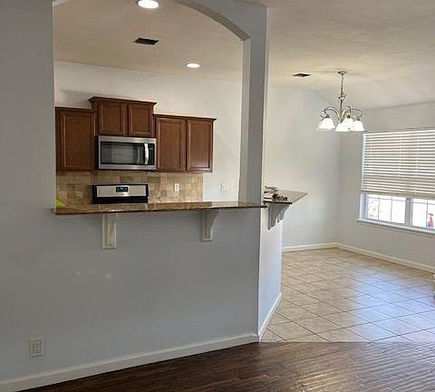 Beautiful hand scraped hardwood floors glisten in the sunlight from the family room windows. Hand scraped hardwood floors in the dining room, halls and master bedroom. Relax on the oversized pergola covered patio as you enjoy the spacious backyard which is completely fenced. House is located on a quiet cul-de-sac. Open floor plan with kitchen, breakfast nook, living area and formal dining room. Stainless steel appliances include dishwasher, gas range and overhead mounted microwave in the open kitchen. Split bedroom plan with three large bedrooms and 2 full baths. Master bath has soaking tub and separate shower with double sinks in vanity. Large walk in closet. Storage building. Three car garage with additional storage space, overhead door opener and keypad entrance. Close access to Creek Turnpike and Highway 169. Close to shopping. $25.00 monthly pet fee required.