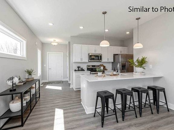Cosgriff Development, the Standard in Quality and Integrity. This wonderfully appointed Ranch townhouse is located in Norwalk, Iowa. The main level boasts a 1/2 bath, laundry room, large master bedroom, private ensuite with a full master bath, and a modern styled kitchen featuring quartz countertops, subway tile backsplash, high-end stainless steel appliances, along with a large pantry! The spacious living room leads to a deck overlooking a beautiful green space with great rear views. The lower level hosts a large family room, 2 more large bedrooms, and a full bathroom. There are 957 square feet of living space on the main level, and 843 square feet on the finished lower level. If garage space is a must, the large 2-car attached garage allows for plenty of storage as well! This home also qualifies for Norwalk's 5-year graduated tax abatement!