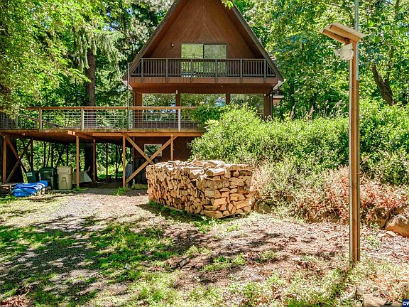 Secluded 4 bedroom Chalet on 5.32 beautiful private acres! Merch timber, and sweeping views of the valley! Custom cabinetry throughout, large master bedroom, newer wood and pellet stoves. Outside find extensive decks, detached 25x25garage w/new roof, and 2 large shops (1st- 60x60, 2nd 35x25)! Located on the outskirts of downtown Brownsville and just a few minutes from I-5. Your own serene country retreat!