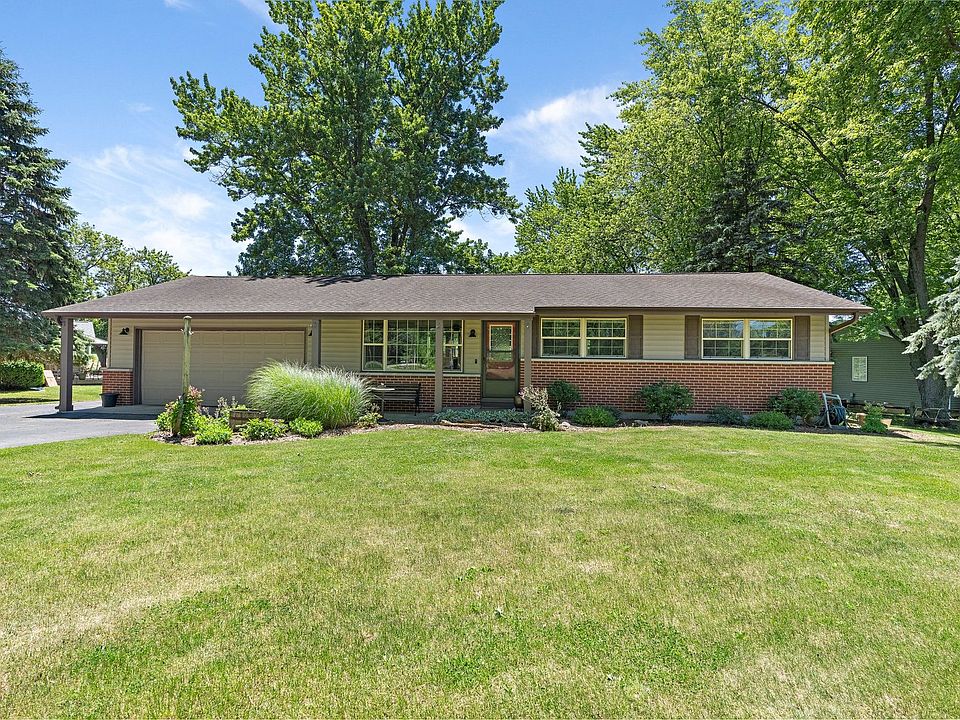 Welcome home to this lovely 3-bedroom, 1.5-bath ranch home, nestled in the serene Sunset View Subdivision. From the moment you arrive, the extended driveway and well-thought-out landscaping, complete with a pear tree, will capture your heart. The delightful foliage and inviting front porch set a welcoming tone as you enter the foyer. The living room, located off the foyer, a perfect place to chill and a great place to entertain guests, offers beautiful views of the front yard. The third bedroom, currently used as the dining room, with dual entrances, can also be an office, den or nursery, and it has great front yard views. The remodeled eat-in kitchen is a chef's delight, featuring granite tile countertops, newer appliances, a range hood, a custom breakfast bar - great for displaying food - and table space for those family meals. It seamlessly connects to an oversized outdoor deck, ideal for hosting outdoor gatherings. The newly remodeled full bath boasts a double vanity, linen closet, and a soaker tub. The primary bedroom provides lovely views of the front yard, while bedroom number three overlooks the tranquil backyard. The spacious basement offers a spacious family room, a bar area with extra storage, a mini-kitchenette perfect for a pizza oven, an office, a half bath, and a large laundry/storage room. You'll be impressed with the versatility and space the basement provides. The two-car attached garage includes a large closet, perfect for tool storage. The quiet backyard, with no rear neighbors, offers country views, perennials, two sheds, and a fantastic deck for entertaining or relaxing. An apple tree produces delicious apples for baking, adding to the charm of this home. Updates include NEW FURNACE and radon mitigation system (2024), well pump (2021), windows (2014), water softener (2022), and much more you'll notice when you tour this home! Located just minutes from downtown Sycamore, with easy access to the Interstate and city amenities, this home offers the best of country living. If you're looking for a peaceful retreat, this home is for you. Welcome to the quiet life!