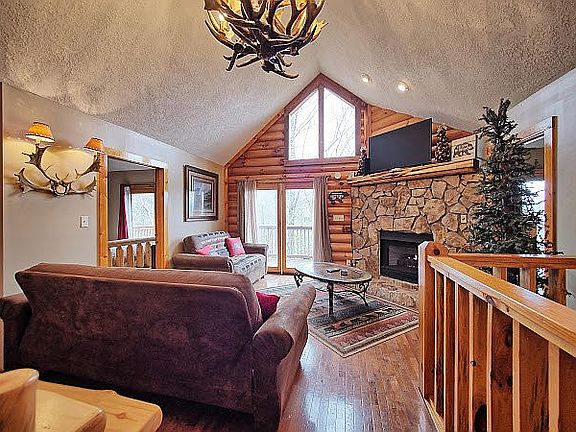 "Smoochin Moose" is an Incredible Income Producing Cabin (message for income details) and located only 1 mile off the Parkway in the heart of Pigeon Forge! This gorgeous home offers 4 Bedrooms / 4 Baths, Fully Furnished with beautiful Log beds, custom Log Dining Table and lots of local charm & appeal throughout. Relax by the gas Fireplaces after taking in all the area attractions and beauty of the Great Smoky Mountains or soak in the hot tub located on the covered lower deck. Main level deck is great for entertaining or hosting family gatherings. The cabin has newly painted rooms, a new granite kitchen counter top and back splash, new roof in 2019, the porch, decks and railings were just stained in 2019 and the lower deck cover was added. Enjoy 2 indoor jacuzzi tubs in addition to each bedroom having it’s own bathroom. The game room has foosball, wall hoop game, a 2nd fireplace and 60 game arcade. All the bedrooms have their own private bathroom, their own doors to the decks and large closets. The flat driveway with zero step entry make it easy for everyone. Winter view of the mountain range. All city utilities!!! Great ROI with this cabin! Close to The Island, Parkway Restaurants and area shopping. Buyers agents are welcome.