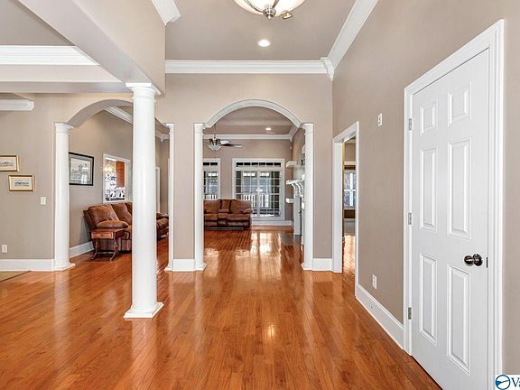 Mountain views in a cul-de sac! Beautiful brick and stone home in a wonderful location. Open floor plan with hardwood floors. Secluded master suite with trey ceilings. Master bath has walk-in shower and custom closet. Large sunroom leading to a nice patio and backyard. Office has custom built-ins. 3-car side entry garage with a tornado shelter. Safe in garage can be purchased separately. The safe is on a separate electrical circuit and has a dehumidifier to protect contents from moisture. HVAC replaced 2019. Convenient walking trails and across from RTJ Hampton Cove golf course. Hampton House membership transfers.