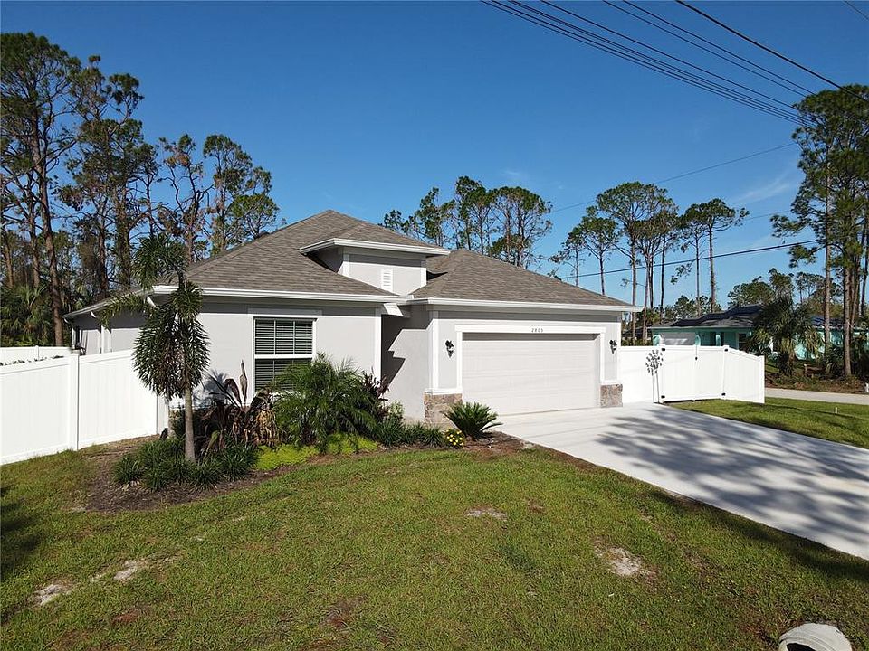 Hurricane Ian was no match for this well constructed, newly built 2020 Home! TAKE A WALK THROUGH YOUR NEW HOME WITH THE 3D VIRTUAL TOUR* Why wait to build when this beautiful home featuring 4 bedrooms, 2 bathrooms & a 2 car garage, situated on a FULLY FENCED corner lot is move-in-ready & offers the perfect blend of comfortable living, choice location, & an affordable price, so come and start living the Florida lifestyle today! Pull up the driveway & be impressed with STONE ACCENTED FRONT elevation, lush tropical landscaping, exterior lights & a widened, oversized DRIVEWAY. Open the front door to be greeted with an inviting hallway leading into your new home which has many upgraded features including crown molding, inlay tray ceilings, warm paint colors, recessed lights, wood blinds, 9’4” volume ceilings & flowing ceramic tile throughout the main living areas. The gourmet chef’s kitchen boasts GRANITE countertops, upgraded cabinets, stainless steel appliances, an abundance of cabinet & counter space, closet pantry, soft close cabinets & drawers, & recessed lights. A well appointed kitchen island/breakfast bar which houses additional seating options for you & your guests overlooks all of the other rooms so you won't miss out on any of the conversations! The quaint dining space is the perfect place to sit and enjoy a homecooked meal with the family, when the meal is finished, grab the popcorn & head over to the open concept Great Room to watch a movie & get ready to wind down for the evening. With privacy in mind, the impressive master suite is tucked away from the other three bedrooms. It is complimented with CROWN MOLDING, oversized walk-in-closet with shelving & an en-suite master bath that’s sure to please! It features a Roman shower with glass doors, dual sinks with centered makeup vanity & drawer, linen closet, separate toilet stall for privacy & a garden tub for the ultimate in relaxation you deserve. Across the home & to the left you will find bedrooms two & three, each room is equipped with a ceiling fan, window, carpet & private closet. The guest bath houses a vanity, mirror & tub/shower combo. To the right is an inside utility room & the fourth bedroom that could also be used as a den, office, playroom, exercise or craft room – the possibilities are endless! Cascading triple sliding glass doors allow plenty of natural sunlight to shine through, & when opened, lead you out to a private screened in lanai fit for a true Floridian. A great space to grab a good book & relax while listening to the birds singing from your own backyard. Take in the sunshine on those hotter days & feel the cool breeze throughout your new home on the cooler days. Love to entertain? The additional open 18x12 patio, aligned with green shrubs, is a great spot for that! Put out a firepit and light some tiki torches & you will have the perfect ambiance along with the smell of BBQ as you grill from your backyard, your friends & family won't want to be anywhere else! NOT IN A FLOOD ZONE. No deed restrictions or HOA fees. Excellent location, peaceful neighborhood, minutes from I-75 & Tamiami Trail! North Port is the perfect place to call home with a central location to shopping, dining, golfing, entertainment, medical facilities, not far from the areas award winning beaches, and the Spring Training home of the 2021 World Series Champions. You don’t want to miss the opportunity to see this incredible home in person, schedule your appointment today! Room Feature: Linen Closet In Bath (Primary Bedroom).