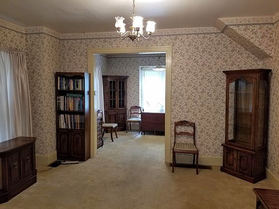 This charming 2 Bedroom, 1 Bath house, nestled on a spacious lot offers a unique blend of vintage character and modern comfort. As you step onto the property, you'll be greeted by a lush expansive lot that provides ample space for gardening, outdoor gatherings or even potential expansion opportunities. The mature trees and well-established landscaping create a serene atmosphere that is perfect for entertaining or relaxation. There is a 14 X 12 covered back porch, a 2 car detached garage and a second entrance to the property as well. Some windows are newer. Hardwood floors underneath carpet on main level. Walk in closet in both bedrooms. There is also an unfinished basement. Central air conditioning. House also features lower county taxes. House is being sold "as is".