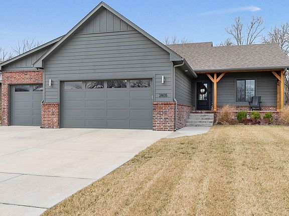 Stunning home in the sought after Falcon Falls neighborhood! Located on a wooded lot with easy access to the walking paths leading to the pond, playground and neighborhood pool. Gorgeous finishes accent this 3 bedroom, 2 bathroom home. Spacious rooms, open floor plan, vaulted ceilings and cozy gas fireplace add to the ambiance. The kitchen features granite and quartz countertops, walk in pantry, stainless steel appliances and a large island.The living room and dining room offer great views of the wooded backyard. The primary bedroom includes a beautiful accent wall, built in storage, large shower with a seat, water closet, walk in closet with built in cabinetry and access to the laundry room. There are two additional bedrooms, hall bathroom and laundry room with a drop zone on the main floor. The unfinished view out basement includes roughed in bathroom and wet bar areas, framed space for a family room and 4th bedroom. This spring will be a great time to enjoy the covered deck and wrought iron fenced yard with sprinkler system! The 3 car oversized attached garage offers extended room for large vehicles. This home has it all! Conveniently located near 254, Koch Industries and NE Wichita.