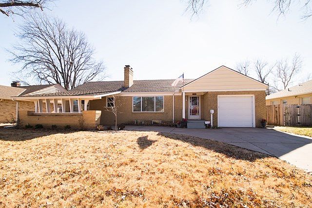 All brick 3 BR 2 BA completely updated East Wichita home. Original hardwood floors throughout and original marble surround on Living Room wood-burning FP! Kitchen updates include new countertops, new sink, and tile floors plus there are white cabinets and a pantry with pullout drawers. All appliances stay. Large master BR complete with corner windows and 2 closets. Close by is the remodeled hall bath where you will find an onyx sink and countertop, tub/shower combo and tile floors. Two more bedrooms, an office with skylights, and a ¾ bath with new cabinetry, onyx sink, tiled shower and tile floors finish out the main floor living space. The basement Family and Game rooms have freshly painted floors. Large open laundry Room also in the basement and plenty of storage. Fenced Backyard sports a brick patio. One car attached garage and a carport too. Newer & replaced features include windows, plumbing, sewer line, HVAC, electrical panel and water heater. Two-year old Security system with remote/phone access, camera and motion detector stays with the home. This home is move-in ready! â" call to schedule your private showing today!!