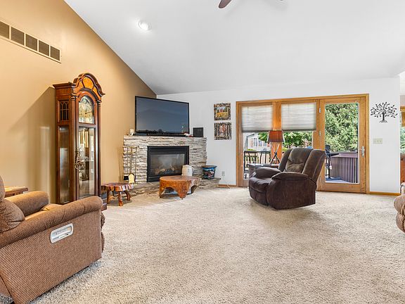 Charming, well cared for ranch in desirable Belvidere subdivision. 1444 SF of living space offering 3 beds, 2 full baths and a 2.5 car garage. Hardwood floors in the entryway, bedroom, hallway and kitchen. Spacious living room with vaulted ceilings, custom gas fireplace and plenty of natural light. Custom dining room design with bay style windows combines with eat in counter and plenty of cabinet space in the kitchen. Convenient main floor laundry located in drop zone with garage entry. Unfinished basement with egress window offers plenty of options for future 4th bedroom or rec room. Well manicured landscaping and spacious deck for private backyard enjoyment.