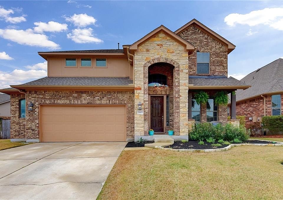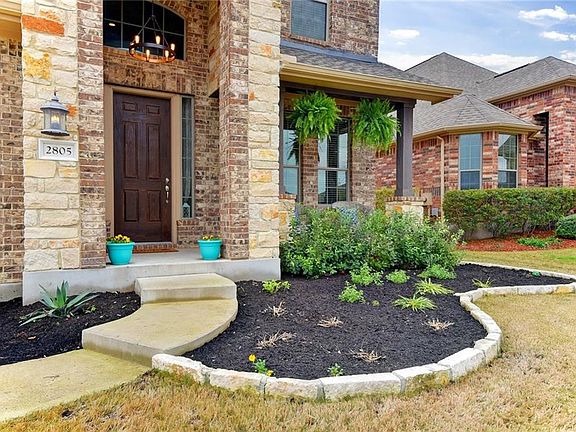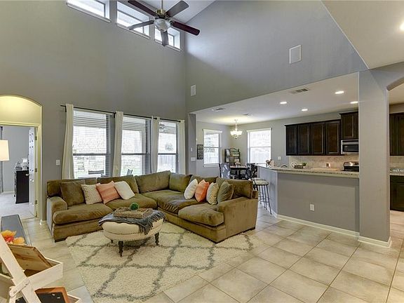 Beautiful Crystal Falls home on extra wide lot! Spacious floor plan with large kitchen, super high ceilings, master suite and office down, 3 beds, 2 full baths and media room up. Garage has bump-out for extra storage. 22' x 14' concrete slab on side of house. 2 A/C units, 2 water heaters. Surround sound inside and out, terraced back yard offers tons of privacy for enjoying the outdoors. Gas stub-out on patio for grill and dedicated electrical circuit ready for your outdoor kitchen design.