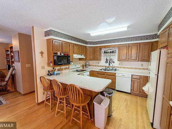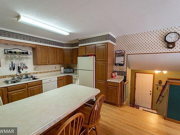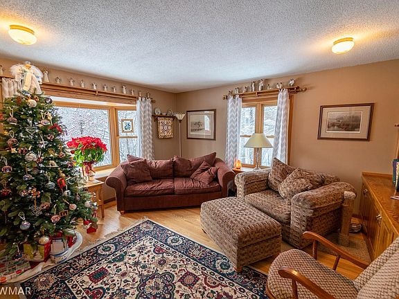 4BR/3BA home on 2 acres close to Bemidji. Secluded location with many mature trees. 2 stall attached garage and an addt shed for all of your lawn supplies. Hot tub on outdoor patio and zero clearance Wilkening wood fireplace in family room for those cold nights. Deck off of dining room for your grilling enjoyment. Beautiful built-in hutch in living room. Wall mounted TV stays. Bay window overlooking front yard. Hardwood floors in kitchen, dining & living room. Master suite. Compliant septic. Radon mitigation in place and a newer forced air furnace with humidifier. All windows (flip down for easy cleaning), exterior doors and gutters were replaced in last 5 years. 200 amp service. Off peak electric baseboard in lower level and off peak dryer. Kinetico water softener.