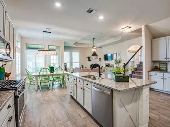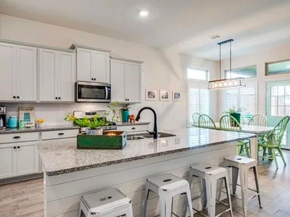 Beautiful home in the Silverado community of Aubrey. Home features an open flowing floor plan complete in today's colors and finishes! Sprawling great room with a gourmet kitchen that has a large island, coffee bar & opens to the dining area. The peaceful master suite hosts an ensuite bath with dual sinks, a tub & a large walk-in shower. Three nicely appointed secondary bedrooms, two baths, a utility room & a sprawling upstairs game room complete the interior of this lovely farmhouse-style home! Enjoy the endless amenities the Silverado community offers from pools, water parks, playgrounds, ponds, walking trails, and more!