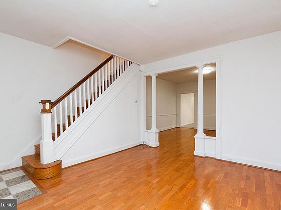 MOVE-IN READY PORCH FRONT ROWHOME WITH LARGE ROOM SIZES & UPDATED KITCHEN! Spacious living room and separate dining room w/ hardwood floors, updated kitchen w/ granite counters & tile backsplash, upper level w/ 3 large bedrooms & 1 full bath w/ whirlpool tub, full basement w/ half bath, and a rear patio with storage shed!