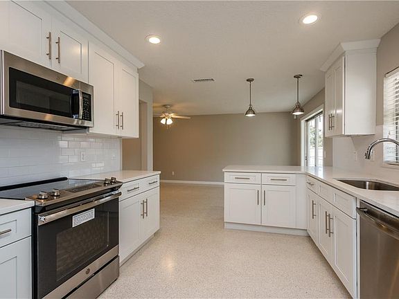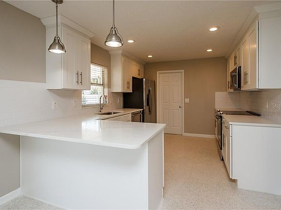 Completely remodeled three bedroom home on a quiet street in the Winter Park Pines. This stunning house features a brand new kitchen with gorgeous white cabinets, granite counters, stainless steel appliances and beautiful refinished terrazzo floors throughout. Highlights include a spacious floor plan with over-sized bedrooms, totally renovated bathrooms, brand new light fixtures throughout and fresh interior and exterior paint. Additional features include a two-car garage, large fenced backyard and inside laundry/mudroom. Conveniently located to just about everything, and most desirable Winter Park Schools! Lawn service is included.