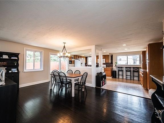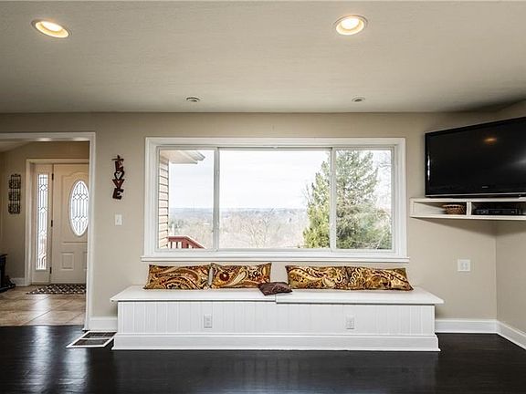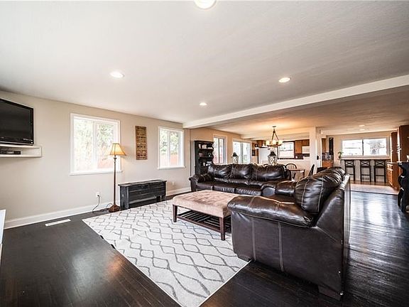 Larger than it looks and must see inside this 4 bedroom 3 full bath home that is located in a private setting with a great view! There is a 1 car integral garage and also a detached over sized 1 car garage that has a lot of room for storage. An addition was completed to enhance the entire front portion of the house to add the entry, Master bedroom suite, living room, and lower level addition added 2 additional rooms that can be bedrooms or a den or office and extra storage. Open floor plan in the living area with hardwood flooring. Great kitchen with plenty of cabinetry, a counter area with bar stools, and sliding doors to the wrap around concrete patio that includes a hot tub and picnic table. Lower level has a spacious game room that features a wood burning stove. Plenty of parking in the long driveway. Nice rear yard.
