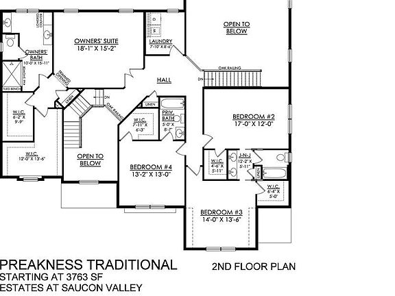 To Be built Home -Personalize colors/options now! The Preakness is spacious floor plan, offering over 3,700 square feet of luxury living space. Enjoy open two-story Foyer and two-story Great Room, each with its own staircase. The Kitchen includes an island with an overhang, providing extra seating for family or guests. Just a few steps away are an optional Butler's Pantry and a large Walk-In Pantry. Enter your private Study through gorgeous double French doors. Host a dinner in your Dining Room, or relax in the Living Room. Head upstairs to your Owner's Suite, which includes dressing area, expansive Walk-In Closets, and a private bath retreat. In the Owner's Bath, you'll find two vanities, makeup counter, and a large shower. Convenient upstairs laundry & three additional Bedrooms are included in the second-floor. One Bedroom has its own private Full Bath, and the other two are joined by a Jack-and-Jill bathroom. Complete with a spacious three-car, side entry garage!