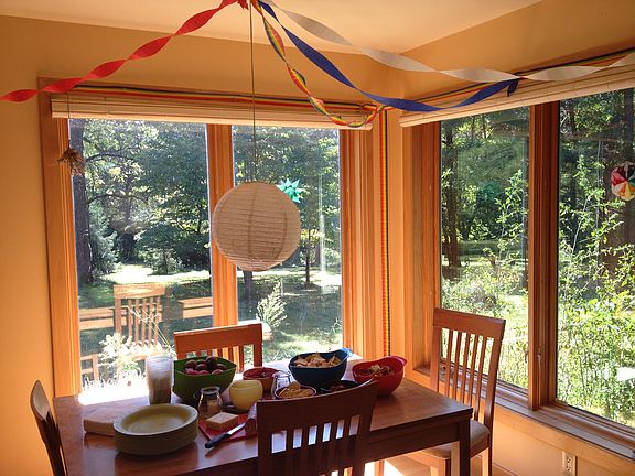 Gorgeous Eco-built house on 7 acres. Privacy, quiet and peace backing up to Griffy Nature Preserve, with immediate access to trails. Garden, fruit trees, nature views from every window. Hardwood floors, large deck and porch for enjoying nature, glass-front wood stove to light up the winter nights, beautiful kitchen and bathroom with a soaking tub with a view, this is a home built for quality and beauty.