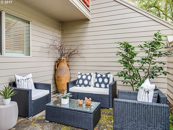 Sophisticated & cozy, this spacious ground level, one bedroom condo in an excellent NW location. Walk to Thurman shops & restaurants; steps to trail heads. Private front and back enclosed patio's and gardens. Open living & dining with gas fireplace & custom built-ins. Updated appliances. New light fixtures. New carpet. Freshly painted. Walk in Master shower. Plantation shutters. Full size washer & dryer. Covered carport w/storage unit.