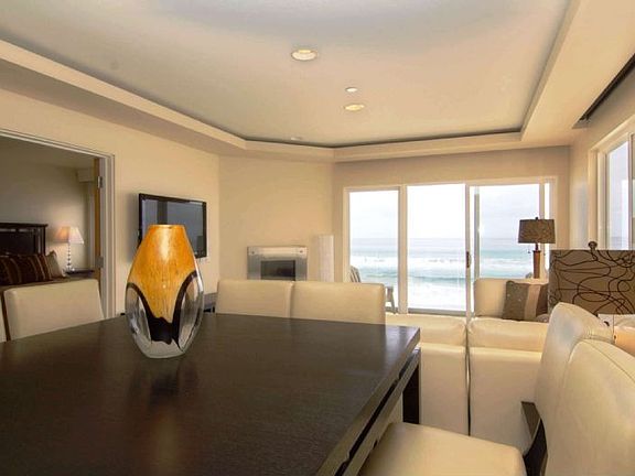 On the Oceanfront, steps from the Heart of Carlsbad Village, this Gorgeous Three Bedroom, Three Bath Condo is a Beautiful Contemporary Unit. Stunning Top-of-the-Line Amenities include a Gourmet Chef's Kitchen with Stainless Appliances, Granite Countertops and Custom Cabinetry, Stoneand Carpet Flooring, Two Fireplaces in the Living Room and Master Suite, Master Spa Tub, Shower and Double Sinks plus an Oceanfront Balcony and Ocean View Windows. Walk to the Beach, Shops, Dining, Entertainment and Coaster. A Great Full Time Home, Beach Get-A-Way or Vacation Rental. Offered at $1,595,000.