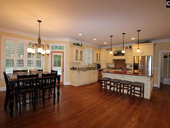 - RoomKitchenFeatures: Granite Counters, Kitchen Island, Pantry, Recessed Lighting, Eat-in Kitchen, Floors-Hardwood, Cabinets-Glazed, Backsplash-Granite