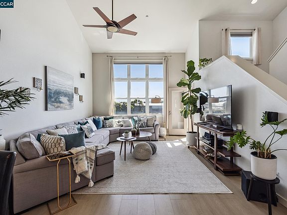 Nestled in a private community on the serene Oakland/Alameda estuary, this three-bedroom, two-bath townhouse-style condo balances tranquil waterfront living with the vibrant pulse of Oakland. Bask in natural light and airy ambiance, with soaring vaulted ceilings and expansive windows. The modern layout adapts to your dynamic lifestyle, whether working from home or entertaining. The updated kitchen invites your culinary creativity. Living and dining areas blend elegance and relaxation. On the main floor, two spacious bedrooms provide a retreat for guests, complemented by a newly updated full bath with smart commode and in-unit laundry. Ascend to the top floor, where your personal sanctuary awaits—a luxe primary suite with a grand bath featuring a soaking tub and separate shower, offering a spa-like experience. Step onto your private balcony to soak in views of the Alameda shoreline. The attached two-car tandem garage ensures ample storage and direct home access. Impeccably maintained grounds feature expansive green belt and a waterfront path leading to the SF Bay Trail. Experience the best of both worlds—tranquil living in a quiet neighborhood with the excitement of Downtown Oakland, Jack London Square, and Alameda minutes away. This is not just a home; it’s a lifestyle.