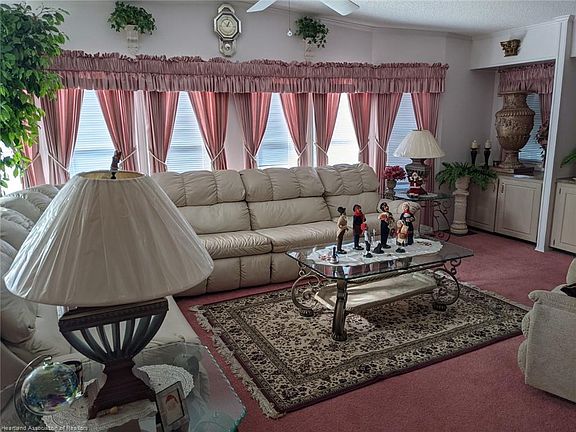 This unfurnished triple wide home is in the rented land section, Marina Cove, of beautiful Highlands Ridge: a gated 55+ community on Bonnet Lake with boat ramps & docks, 2 pools, tennis & pickleball courts, 2 adjacent 18 hole golf courses and more, overlooks ponds and is within a stone's throw of the community center with its exercise room, library and pool. Perfect for full time living as it is large, all rooms are spacious and the garage is oversized. Open plan concept with living room, dining room and kitchen with cook top island, large den and 2 screened rooms, both with pond views. The master bedroom is excellently distributed with his and hers vanities, garden tub and shower. Residency approval is required prior to going to contract. Lot rent is $532 and will be confirmed by the Property Manager. This is a wonderful community with lots of seasonal activities, nestled amongst the orange groves, yet only 10 minutes from town. Call for your appointment without delay, there are very few triple wides in Marina Cove.
