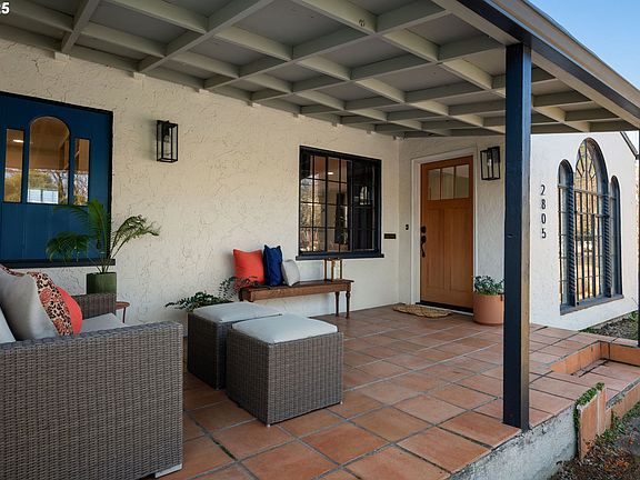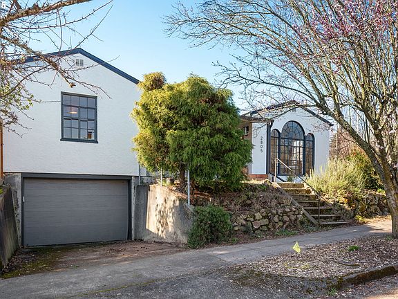 A prized Mediterranean, coveted like a ray of sunshine in the rainforest! Drawing upon architectural elements from Europe, Africa, and the Middle East, this sublime roost, perched above street level, calls you to linger on the front terrace. The dramatic Venetian windows greet the sunrise and set the tone of this dreamy corner sanctuary. Refinished oak floors and an abundance of divided light windows define the great room, featuring a striking fireplace with a floating mantel and original built-ins. Stainless steel appliances and apron sink grace the open kitchen with a stylish range hood and eating bar. Imbued with the healing sensibility of the Southwest, the open flow fosters gatherings and supports solitude. The flexible floor plan could be readily amended to include a 3rd bedroom by adding a wall to the office, or just draw the drapes for guests. Divide the massive primary closet to add a closet to the 2nd bedroom. The lower level has high ceilings and awaits your family room and shop. With a custom-built storage/display center, ample closets, a double-deep garage, and a blank slate basement, there's room for every hobby and passion. The fenced yard features a covered area for respite on rainy days, with plenty of room for Fido to roam. Enjoy the quiet pocket of the neighborhood with quick access to an array of eateries and shops, multiple grocery stores, parks big and small (Ivon St. Park, Creston Park, pool, off leash area, Mt. Tabor) and excellent transit- with nearby bus stops (Division Express,14,9,75) and just a couple of miles to the orange and green MAX lines. Offers are due on Tuesday, 3/18 at 1pm. [Home Energy Score = 6. HES Report at https://rpt.greenbuildingregistry.com/hes/OR10236071]