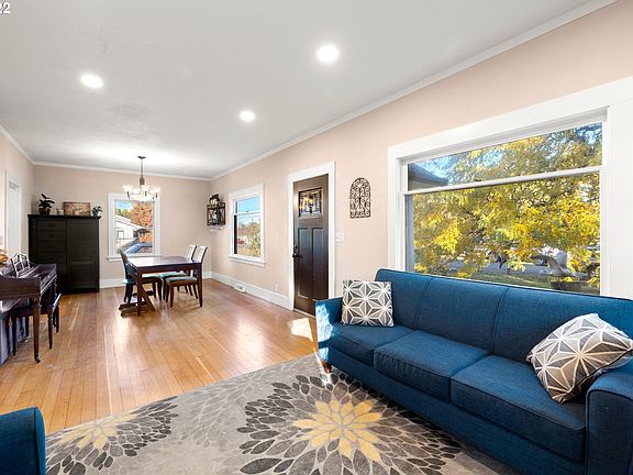 This classic home has 100 year old charm with its original wood floors, wood framed windows and timeless architecture mixed with modern comforts of the fully remodeled kitchen and bath, new appliances, tankless water heater, heat pump, forced air gas, and RV hookups. Extremely large 18,000+ sqft yard with beautiful trees and fire pit. Large covered patio and workshop out back. Walking distance to new South Hillsboro shops and restaurants. Space for shop or ADU! Assumable loan @3.125% available.